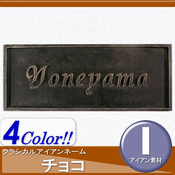表札 アイアン オンリーワンクラブクラシカルアイアンネーム チョコ 横長方形 戸建て オーダー