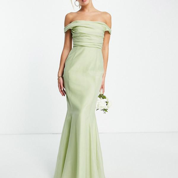 エイソス ASOS asos ASOS DESIGN ブライドメイド オフショルダー マキシドレス コルセットディテール セージ ワンピース レディース 女性 インポートブランド 小さいサイズから大きいサイズまで
