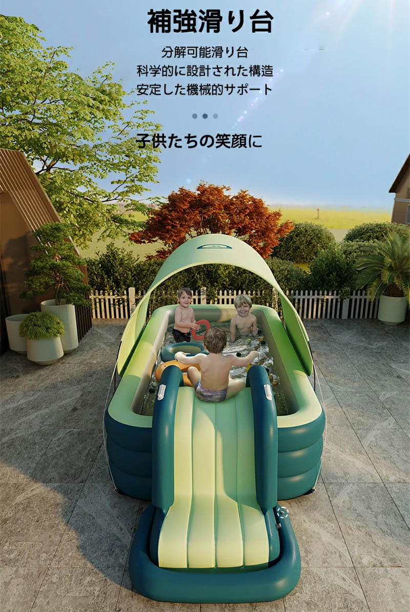 【送料無料】 家庭用プール ビニールプール ファミリープール オーバルプール 自動充気 エアプール 子供用 ベランダ お家遊び 子供 夏休み 屋外用 キッズプール 急速充電 子供用プール 三層 高耐磨耗性 日焼け防止 UVカット 屋根付き 滑り台付き サンシェード 簡単組み立て関連商品 送料無料 新作 ... 送料無料 新作 ... 送料無料 新作 ... Information 商品情報 商品番号 :L5-pool09 自宅でいつでもレジャープールを作れて、公共の場所に行かないで、見知らぬ人とプールを共用する必要がないです。