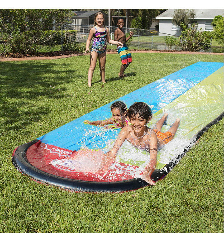 芝生の上で簡単にウォータースライダーが完成! 片側には噴水機能あり! ※芝生の上で使うことをおすすめします。