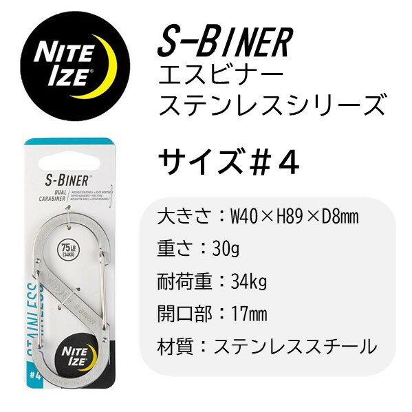ナイトアイズ エスビナー #4 ステンレスシリーズ 【クリックポスト】 NITEIZE S-BINER キーホルダー キーラック キーリング ステンレス スチール アウトドア ギア