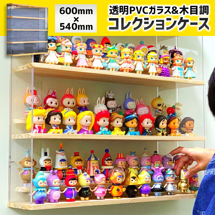 【送料無料】コレクションケース 4段(棚タイプ)600×540mm 透明PVCガラス+木目調 おしゃれ 可愛い 長持ち 使いやすい 大容量収納 コンパクト収納 省スペース収納 北欧風 透明ケース フィギュアケース ショーケース 透明ラック クリアケース 大型 アンティーク風