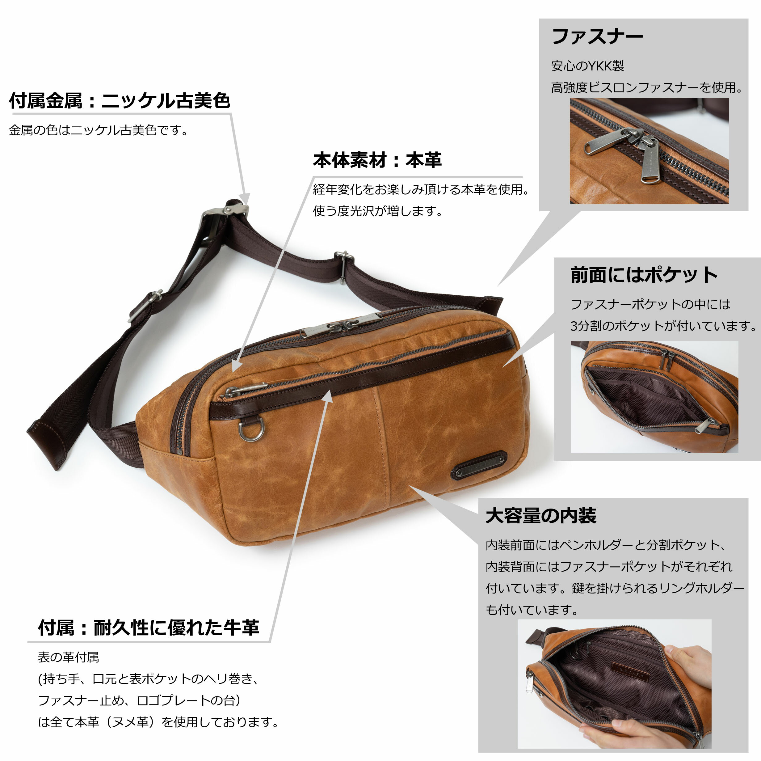 ボディバッグ メンズ 本革 レザー ショルダーバッグ 斜めがけ バッグ ブラウン