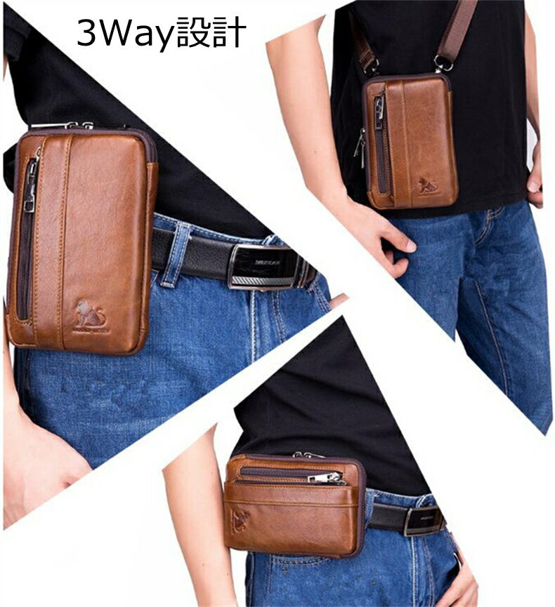 ウエストバッグ ボディバッグ ウエストポーチ ショルダーバッグ メンズ レディース レザーバッグ 本革 牛革 斜め掛けバッグ 3WAY 男女兼用 普段使い 大容量 多機能 お出かけ アウトドア 通勤 旅行 かっこいい おしゃれ 便利 鞄 プレゼント 紳士 レトロ 【即納】 aaa