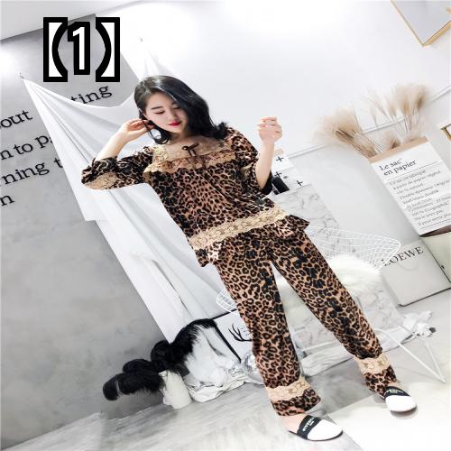 ベロア パジャマ レディース セクシー 長袖 上下セット 秋冬 ヒョウ柄 ツーピース レース 大きいサイズ
