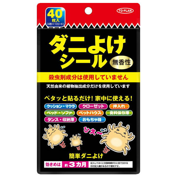 ダニよけシール 40枚 TKY-76 天然植物成分使用 ベッド じゅうたん ベビーカー クッション 押し入れ 車 布団 ペット ダニよけ ダニ捕り 安心 安全